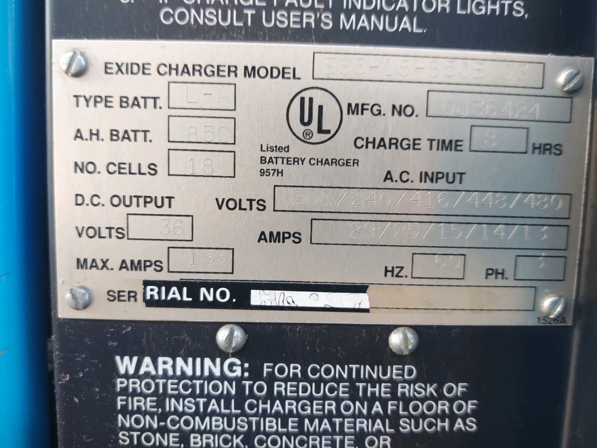 Exide System 3000 Charger $500.00 Business Financing Available Shipping: Add to Cart to Calculate In stock More Options Add to cart Request Quote Make Offer Offer* Full Name* Email* Telephone Notes Δ Make Offer Compare SKU:Exide Charger Inventory #: 8924 Category:Charger Condition:Used Machines Type:Equipment Brand:Exide Print Page Email Description Description Exide System 3000 Charger Inventory # 8924 Model: ES3-18-850B03 FOB Our Baltimore, MD Warehouse Related