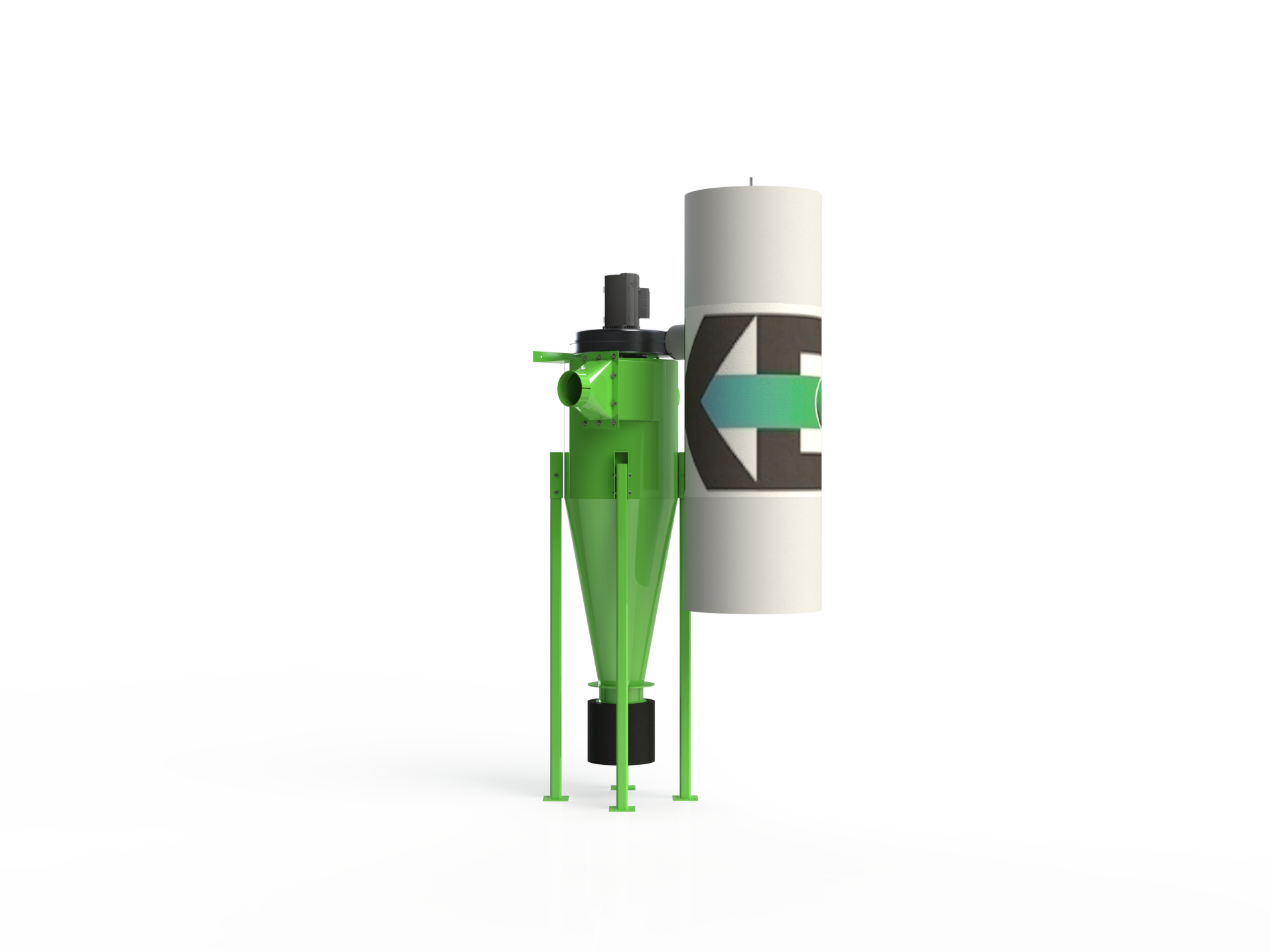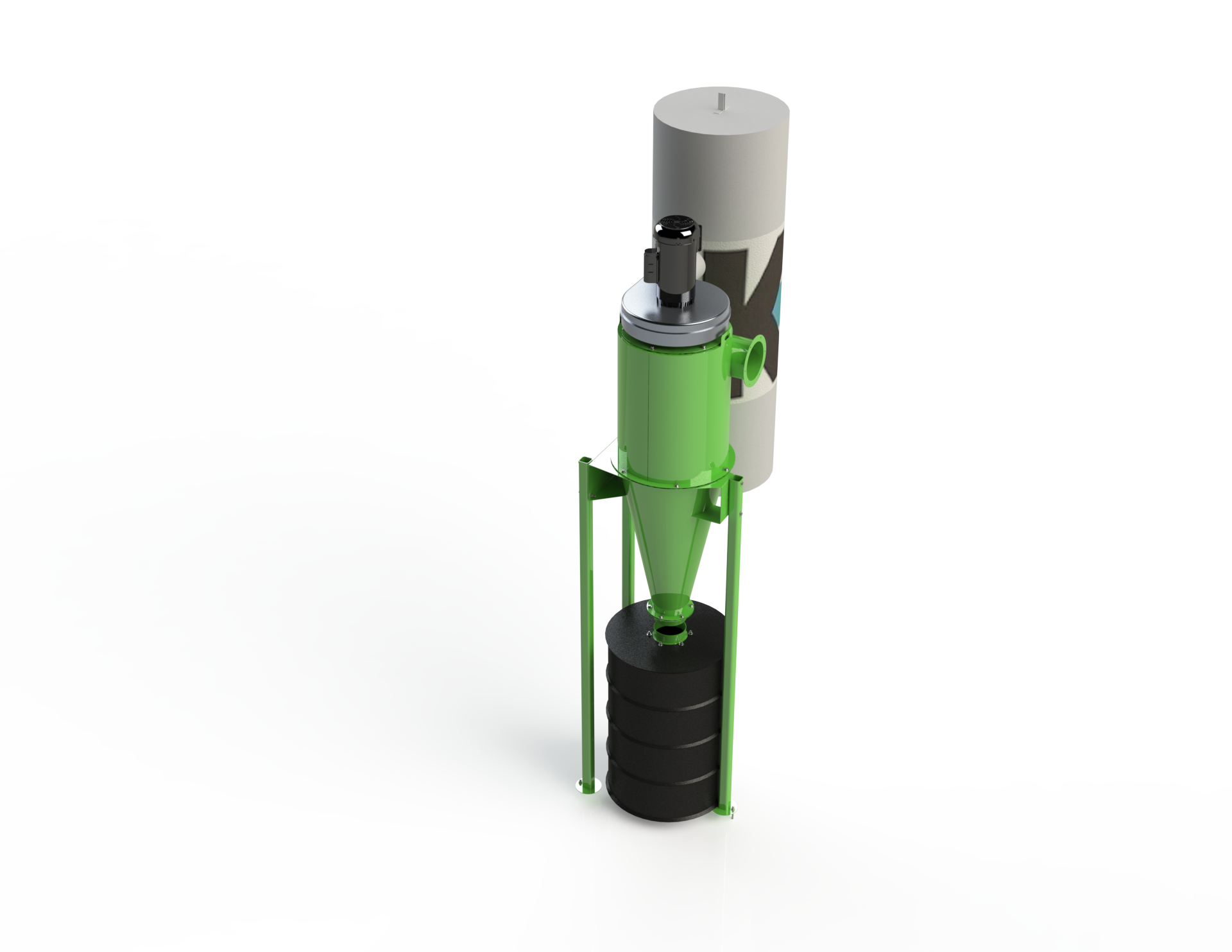 由空气旋转产生。在旋风筒内部,灰尘被强迫向下进入料斗并沉积