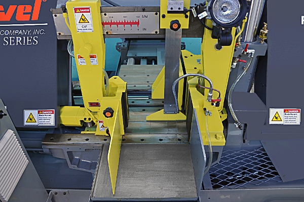 虎钳:液压全抚摸。前颚是分开的,以减少残余,只有3″。分裂虎钳钳口也有助于减少毛刺留在材料上,是理想的束切。将工件夹在刀片两侧,减少刀片振动,提供更精确的切割和更长的刀片寿命