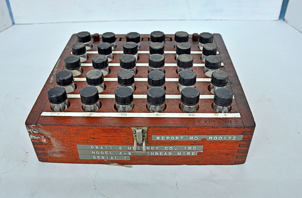 校准外螺纹螺距直径,每个尺寸用三根螺纹线,范围为每英寸4 - 80个螺纹(tpi)。螺纹线状况良好,随时可以使用。