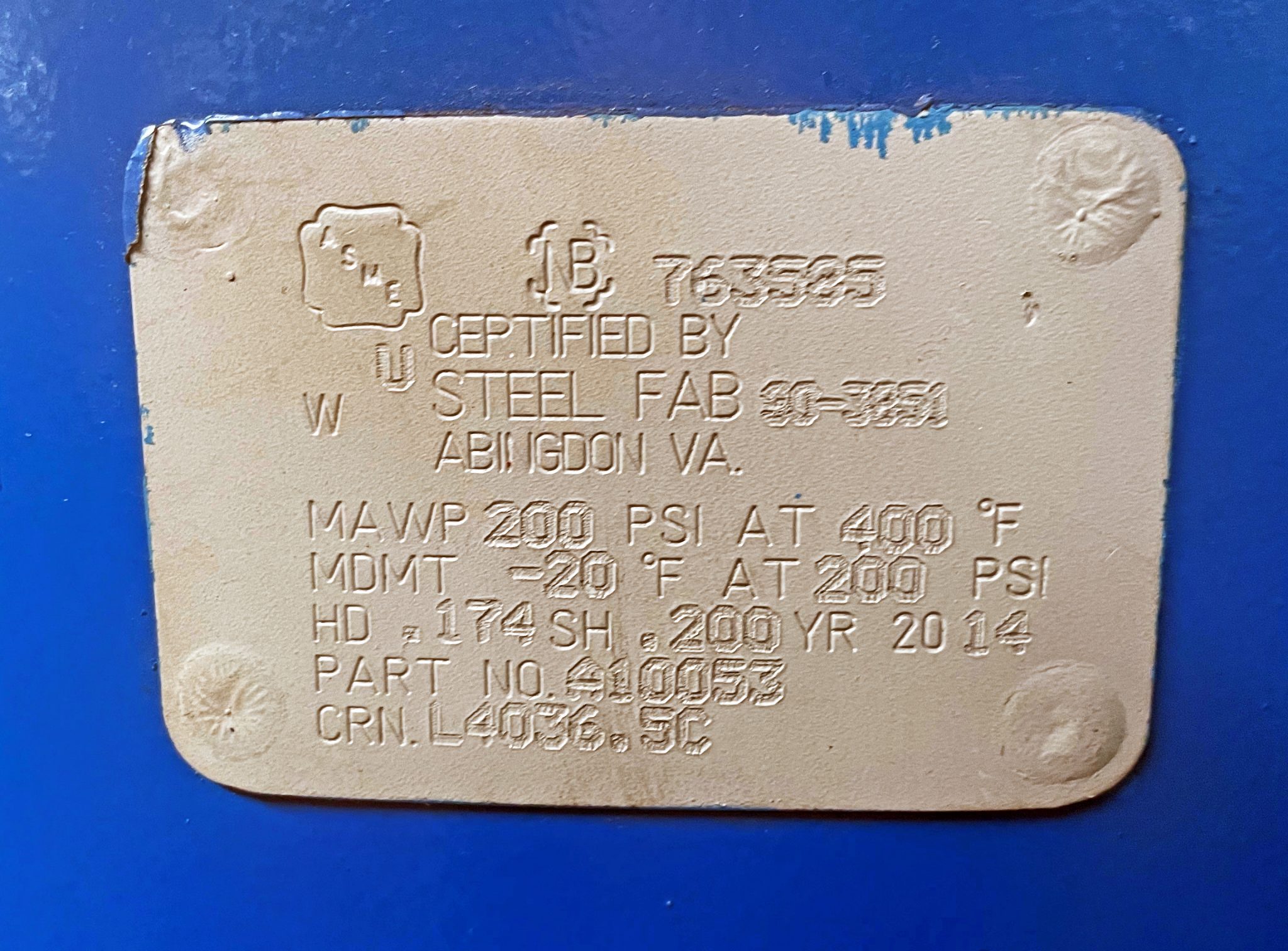 钢Fab 240加仑立式空气罐,A10053 $1250 .00 企业融资提供 运输:联系我们运费 现在有货 更多的选择 添加到购物车 请求报价 让提供 提供* 全名* 电子邮件* 电话 笔记 让提供 比较 SKU:Steel Fab - A10053 - Air Tank 1 库存#:9114 类别:空气压缩机,空气压缩机、集尘器等。 条件:使用机器 类型:设备 品牌:钢铁工厂 打印页面 电子邮件 描述 描述 钢Fab 240加仑立式空气罐,A10053 库存# 9114 模型:A10053 S / N: 763585“2014” 规格: 容量:240加仑 Psi: 200 @ 400°f 直径:30” 身高:84” 开放:7不扩散核武器条约》 机械规格: 尺寸:40″x 32″x 94″H 重量:约。524磅。 FOB我们的巴尔的摩,MD仓库 相关的