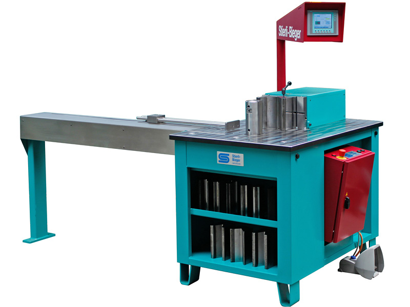 Stierli-Bieger的简单数控控制提供了能够通过在冲头的位置或直接进入机器的位置来将行程长度进行编程到机器中,或者可选地编程弯曲的角度。它可以完全控制可选的1,2或3米背表,以便快速,准确地定位该部件。该控件最多可容纳200个程序,每个步数为15个步骤